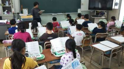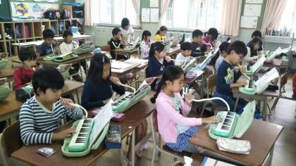 2年2組は、音楽で鍵盤ハーモニカの学習をしていました。