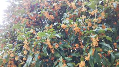 西淡路小学校には、2年生の教室の前に2本のキンモクセイの木が植わっていますが、あたり一面とてもよい香りが漂っています。