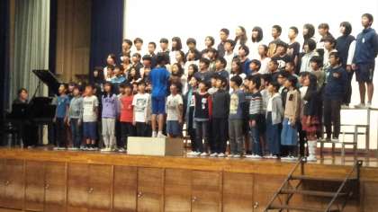 の曲を立派に歌い上げました。いつもと違う雰囲気に緊張したと思いますが、中学校の先生から「とても良かったですよ」とお褒めの言葉をいただきました。