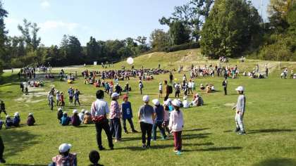 お弁当・おやつのあとは、グループごとに風船バレーを行いました。