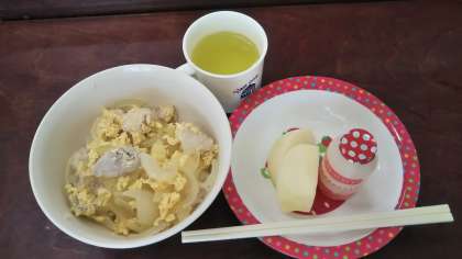 今日の朝ごはんやさんに、親子丼が登場しました。