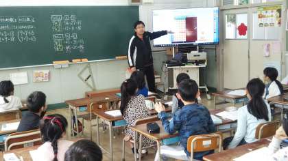 お家でも練習を重ねていると思いますが、学校では普通に唱える「のぼり算」のほか、後ろから唱える「くだり算」、バラバラに答える「とび算」など、様々なやり方で九九の学習を行っています。友だち同士で一緒に九九を唱えあったり、問題を出し合ったりする姿もよく見かけます。