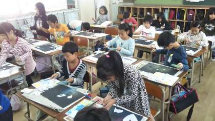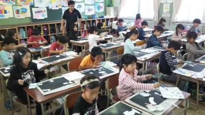 今日は「スパッタリング」の練習ということでしたが、すでにとても味わい深い色合いの作品をつくる子もいました!