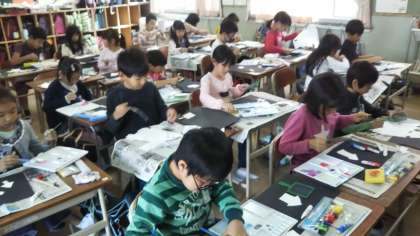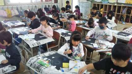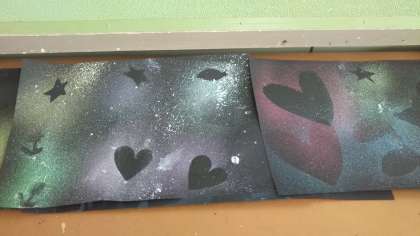 「スパッタリング」を使った図画工作の学習、今日は2組でチャレンジです。