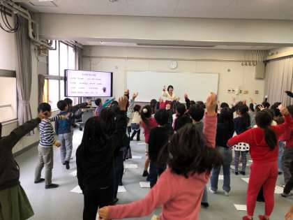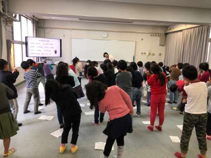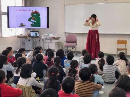 本校の指導に来ていただいているソンセン二ムから、「トッケビのかなぼう」というお話を聞きました。そのトッケビ(おばけ)が出てくる歌も教えていただきました。歌に合わせて踊りながら、最後にジャンケンをするのが大盛り上がり!休み時間にも教室で子どもたちは遊んでいました。