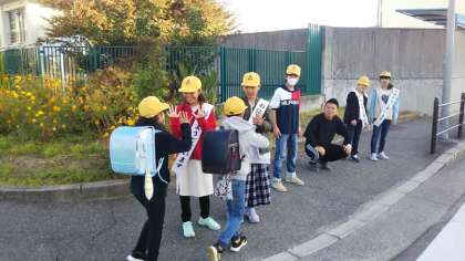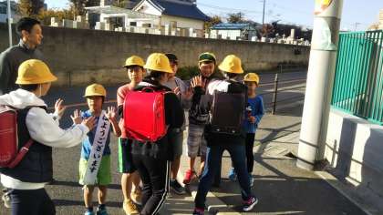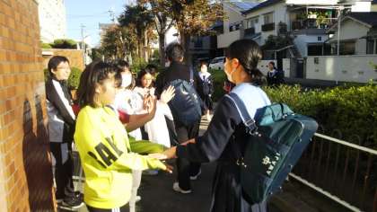 児童会のメンバーも昨日とは入れ替わり、元気よくあいさつ、ハイタッチ!