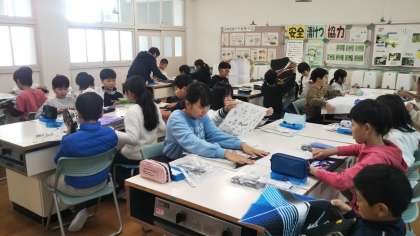 5年生の家庭科で「ナップザックづくり」が始まりました。