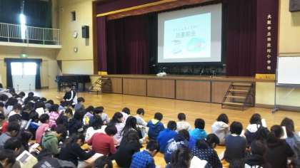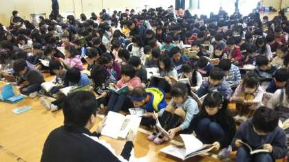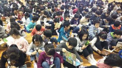 12月の児童朝会は「読書朝会」として行います。朝会時に子どもも先生も一冊の本を持って講堂に集合し、10分間、全員が本を読む時間を取ります。校長先生、図書委員会の子どもたちからお薦めの本の紹介もありました。講堂でこれだけの人数が一斉に本を読む光景はなかなか壮観でしたが、1人1人が思い思いに読書の時間を楽しみました。