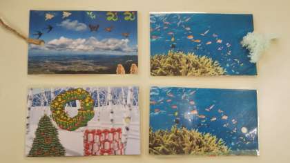 低学年は本を10冊読むと、高学年は本を500ページ読むと、“しおり”と交換してもらえます。“しおり”は型紙を抽選箱から取り出して、そこに自分の名前やイラストなどを入れてラミネートした、世界で一つのオリジナルしおりです。