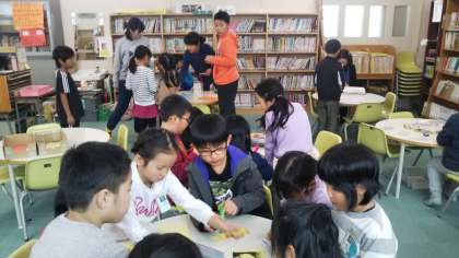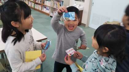 今日も図書室に来た子どもたちは、スタンプラリーカードと交換した“しおり”を嬉しそうに作っていましたよ!