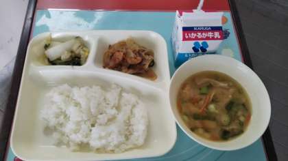 給食の出汁は家庭でよく使う顆粒や粉末といった既製品を使うのではなく、いつも削り節や昆布を使って一から出汁をつくって使っています。一から出汁をつくること自体、家庭では少なくなってきていると思いますが、今日は“煮干し”から出汁をつくりました。煮干しの値段が年々高騰してきているため、煮干しを出汁にしたおみそ汁は給食に出る回数が限られているそうです。