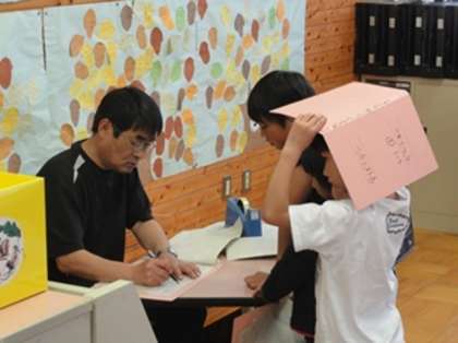 学ぼうデーボランティアの方にチェックをしていただきます。