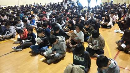 400人以上の子どもたちが、一斉に本を読んでいる姿はやはり壮観です。