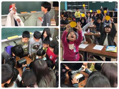 いつものように学習をしていると、九九の暗唱ができるようになったのを聞きつけた九九大王が、教室にやってきました。子どもたちからは「校長先生来てくれたー!」と大歓声。九九大王から一人ひとり賞状を渡してもらい子どもたちは大はしゃぎ。そして、魔法の宝箱のカギを手に入れるため、100マス計算で勝負です!なんとか勝利し、ついに宝箱が開く時がきました!「うわー!」という声が教室中に響きわたり、嬉しそうにメダルを天に掲げる子がたくさんいました。2年生のみなさん、よく頑張りましたね。これからもかけ算がんばってくださいね。