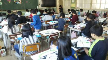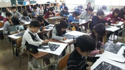 作品展に向けて、4年生は絵画作品のほうの仕上げにかかっています。