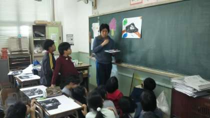 木版画をしたあと、刷り上がった用紙を台紙に貼りつけていくのですが、台紙にひと工夫です。