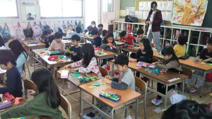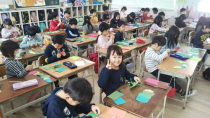 1年生の教室をのぞいてみると、何やら子どもたちの楽しそうな姿が…。