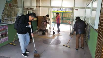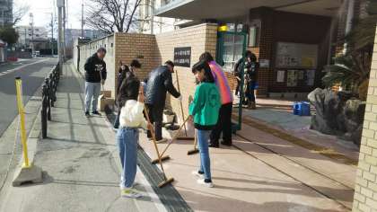今日は西淡路小学校ははぐくみネット事業として、はぐくみネット協議会のメンバーのほか、町会、女性会の皆様にお越しいただき、大掃除のお手伝いをご協力いただきました。子どもたちも一緒に清掃活動を行い、正門・玄関周辺をきれいにしました。