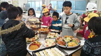 子どもたちの大好きなものが所せましと机に並べられ、子どもたちは本当にうれしそうな表情で