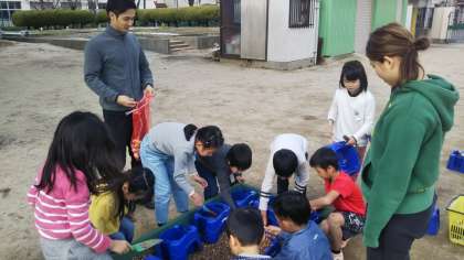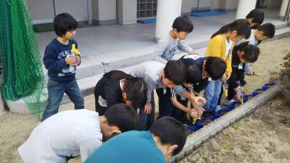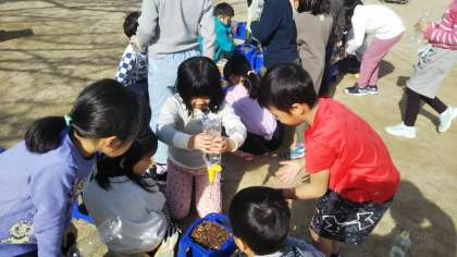 そんな中、1年生の子どもたちがチューリップの球根を植えていました。