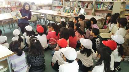 今日は休み時間を使って、図書室で「お話し会」が開かれました。