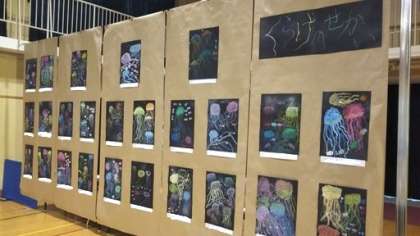 2年生の絵画作品は「ザリガニ」と「くらげの世界」です。