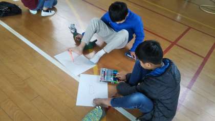 最後に、子どもたちは実際に口や足を使って絵や文字を書いてみましたが、とても難しいことがわかりました。