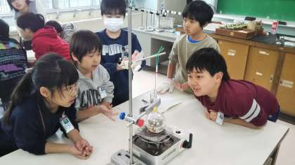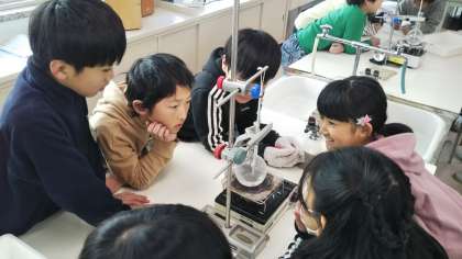 フラスコに水を入れて熱していくと、時間とともに水にはどのような変化が表れ、どのようにあたたまっていくのか、実験を通して学んでいきます。
