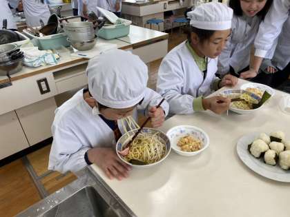 連日続いた調理実習も今日で最終です。3組もユニークなメニューがそろいました。グラタンにピザ、ラーメンにチャーハン、みそ汁に手巻きと和洋中さまざまな料理にチャレンジしました。中でも気になったのはシーチキンの使用量!不動の人気食材はどの料理にも使用され「とりあえずシーチキン入れとけばまちがいない」と・・・試食すると確かにおいしい!ツナ缶のオールマイティーさに気づいた実習でした。