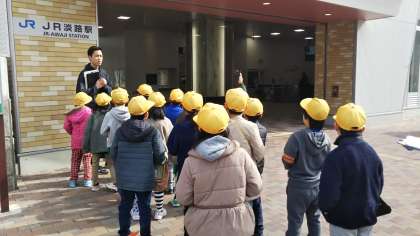 今日は実際に校外に出て、JRの駅や須賀の森公園、地域のお風呂屋さんなどに行きました。