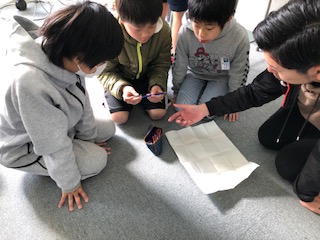 休み時間に多目的室に集合したのは5年生と4年生の児童会の子どもたち。何が始まるのかと覗いてみると「それはゲームの方が喜んでくれるんじゃない?」「気持ちが伝わるように丁寧に描こうよ」と打ち合わせをしていました。大好きな6年生の卒業に向けて、在校生たちもサプライズで何か計画しているようです。大人に言われたことをこなすのではなく、自分たちで話し合ったことを計画的に実行する。授業だけではなくこのような活動も子どもたちの成長を支えています。