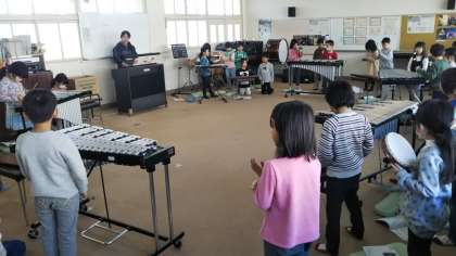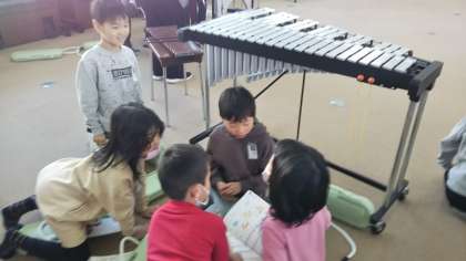 子どもたちは班ごとに練習しており、グループで息の合った演奏にしようと頑張っています!