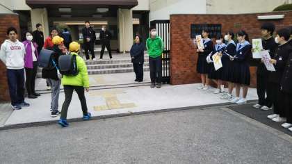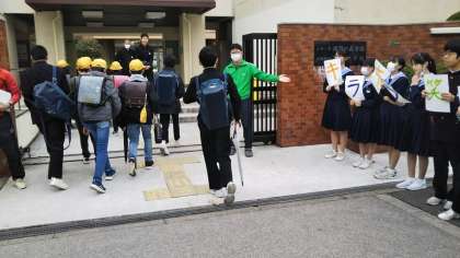 はじめのころは少し緊張気味に中学校の門をくぐっていた6年生ですが、今はすっかり慣れて中学校の先生方や先輩たちともしっかりと朝の挨拶を交わしています。