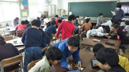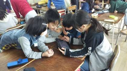 グループになって、アンケートをとって調べたことを自分たちで分析し、考えたことを分かりやすく相手に伝えていく学習です。
