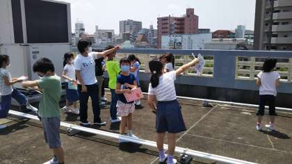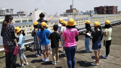 今日の午前中の授業では、校舎の屋上に上がり、淡路、西淡路の町並みを見学しました。ふだん見慣れた街並みも、少し高いところから眺めると、また違った発見がありました。