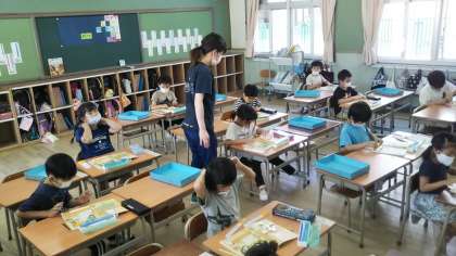 1年生は算数は「すうじ」の学習が終わり、ブロックを使った「かず」の学習に入っています。