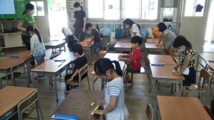 操作をともなう活動が学習の中に入り、子どもたちは目を輝かせてブロックを動かしていました!
