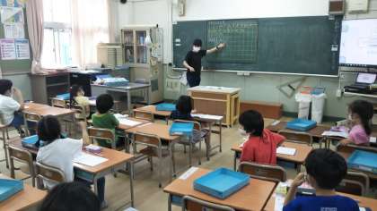みんな、黒板に書かれたお手本をまねて、一生懸命きれいな数字やひらがなを書こうとがんばっていましたよ!