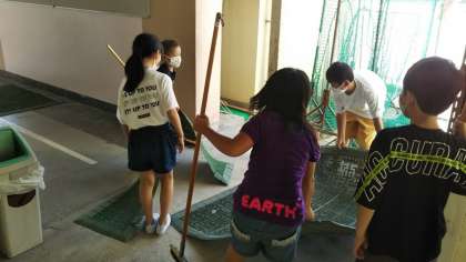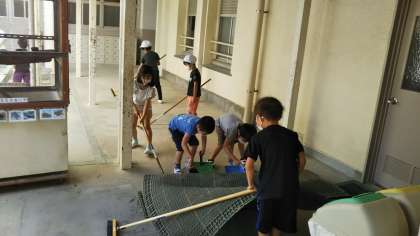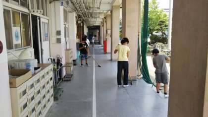 自分たちの教室、廊下だけでなく、みんなが通る廊下や階段も、分担をしてそうじをします。