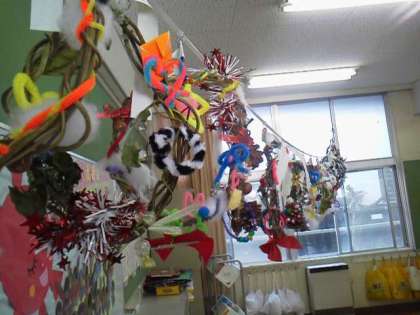 土曜授業の時におうちの方と一緒に作ったリースができました。