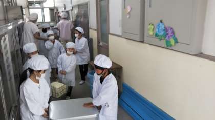 1年生は、給食当番4日目です。