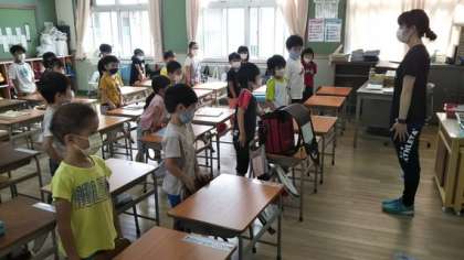 一斉授業が始まった先週から、朝会のあと、“VTR”で登場しています。