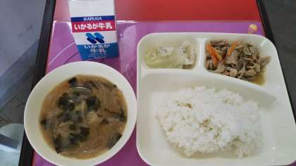 ごはん 牛乳 豚肉と野菜のいためもの キャベツの赤じそあえ