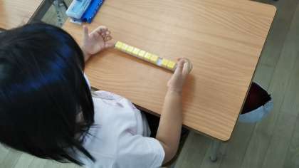 「9本のきゅうりを(先生は「きゅうりのQちゃん」と言っていました(笑))3本食べると残りは6本」