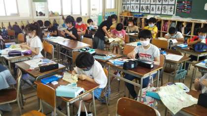 玉どめや玉結びの学習から始まり、今は「お裁縫」の基本でもある「なみぬい」の練習をしています。