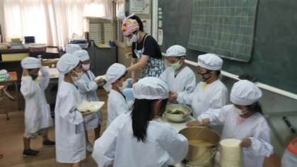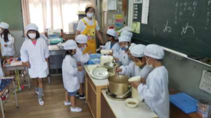 1年生の給食当番も慣れてきましたね!上手に配膳することができています。