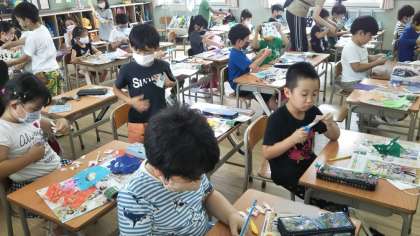 ちょきちょきかざりをつくろう(1年図画工作) (7月10日)