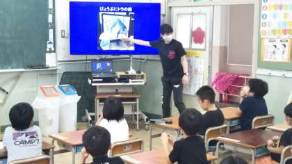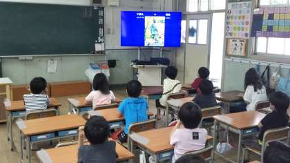 子どもたちは各学級で劇団員さんによる放送やパワーポイントを視聴しながら、実際に上演される劇の豆知識や劇団員さんの発声の仕方などを教えてもらいました。
