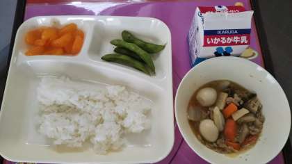 ごはん 牛乳 八宝菜 枝豆 みかん(缶) です。