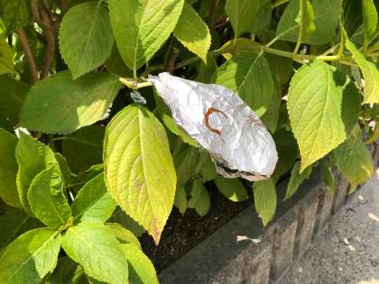 昨日、班で選んだホウセンカやアジサイ、インゲンマメの葉をアルミニウムはくで包み準備をしていました。